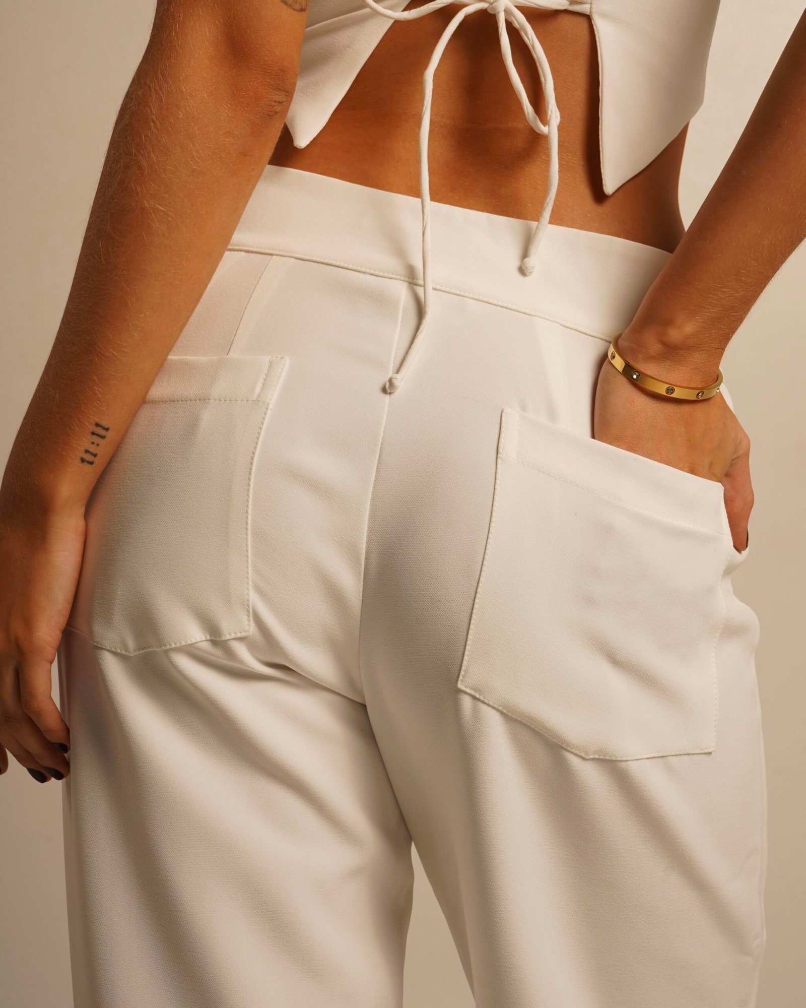 Incluye bolsillos en la parte de atrás y un detalle lateral en una de las piernas que lo hace aún más especial y distintivo. Ideal para usar con la Blusa Mael o Oriana top para un look versátil.