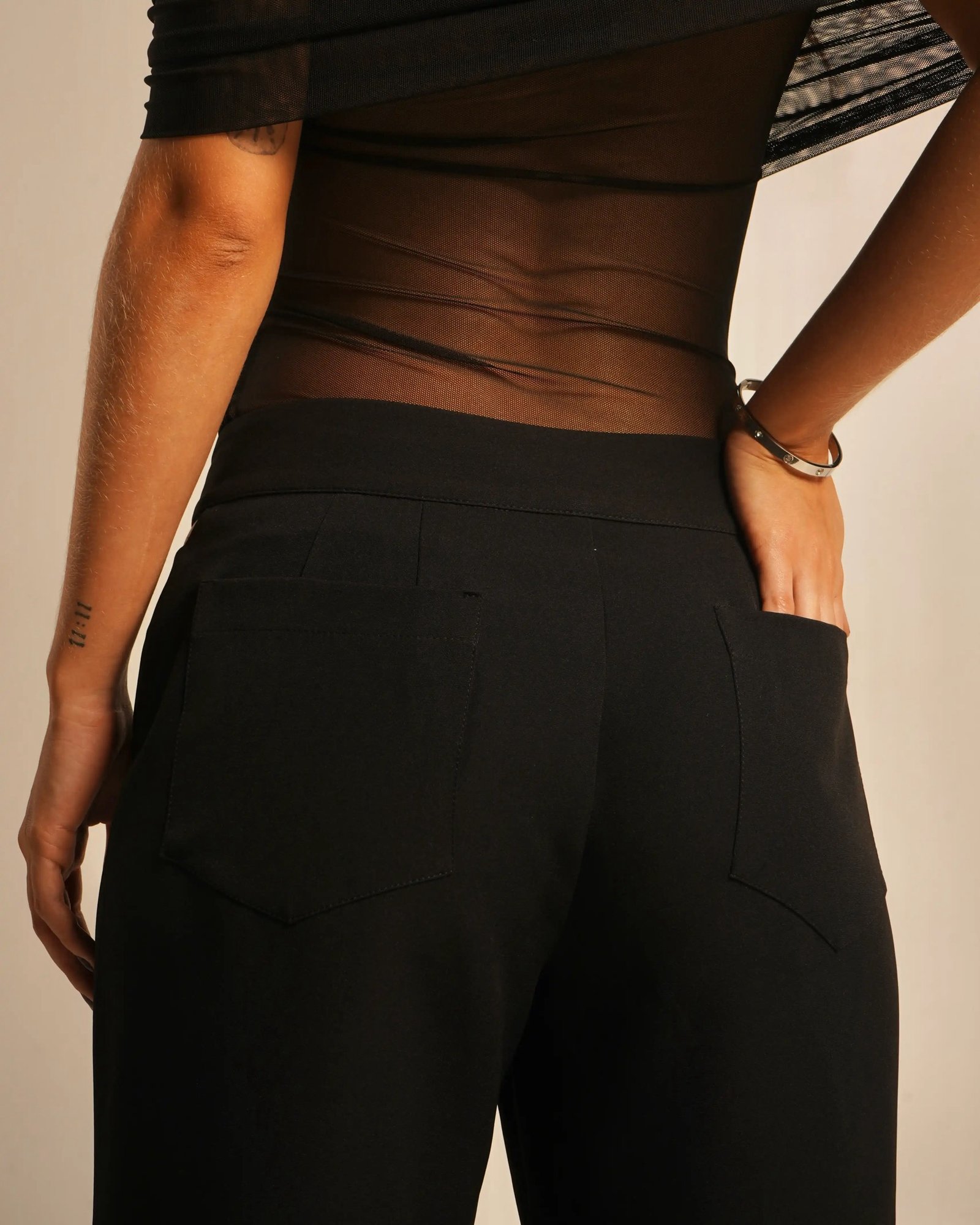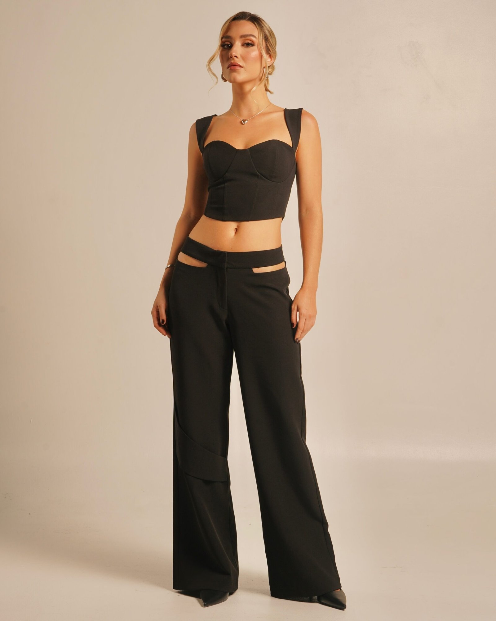 El Pantalón Mael es perfecto para crear un look moderno y estilizado. Cuenta con cut outs frontales delicados que le dan un toque único sin perder elegancia. Su diseño recto–ancho estiliza la figura y aporta fluidez al caminar.