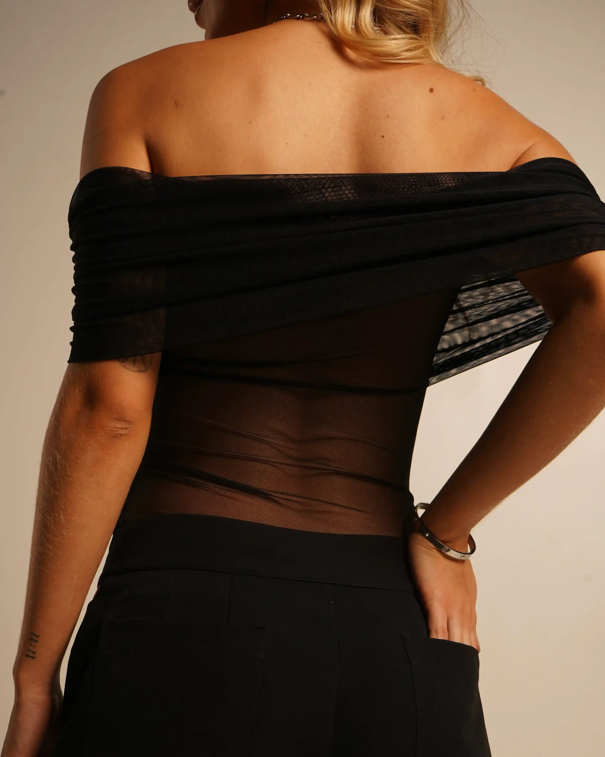 El cuello bandeja crea un look romántico que realza hombros y clavículas, ideal para outfits de noche o eventos especiales.